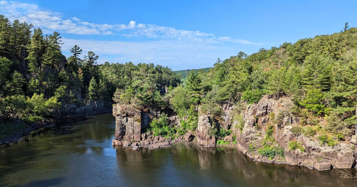 Start with Interstate State Park, because that’s why you’re here. The Minnesota side gives you cliffs, the world’s deepest explored glacial pothole to peer into, and easy trails that don’t require a full hydration strategy. Good for a relaxed walk or letting the kids burn energy without someone crying halfway through. Begrudgingly we’ll mention that if you’re looking for a longer hike the Badgers’ side of the border is a little better for it. Cross the bridge, get your steps in, then come back and never admit WI is better at anything.
